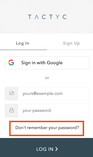 Please note that resetting password is only possible if you are not using your Google auto-login to access Tactyc.