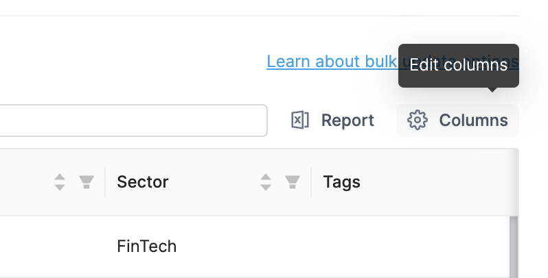 * Open the **Columns** on top of your **Investments Table** to select the appropriate metrics