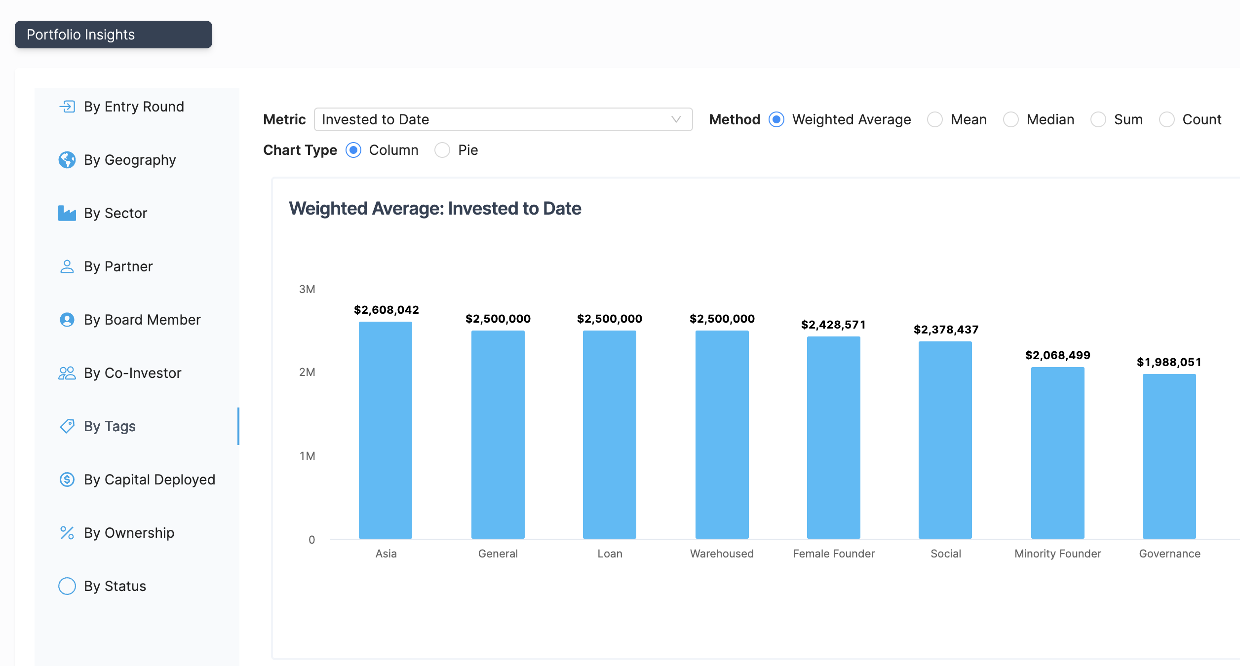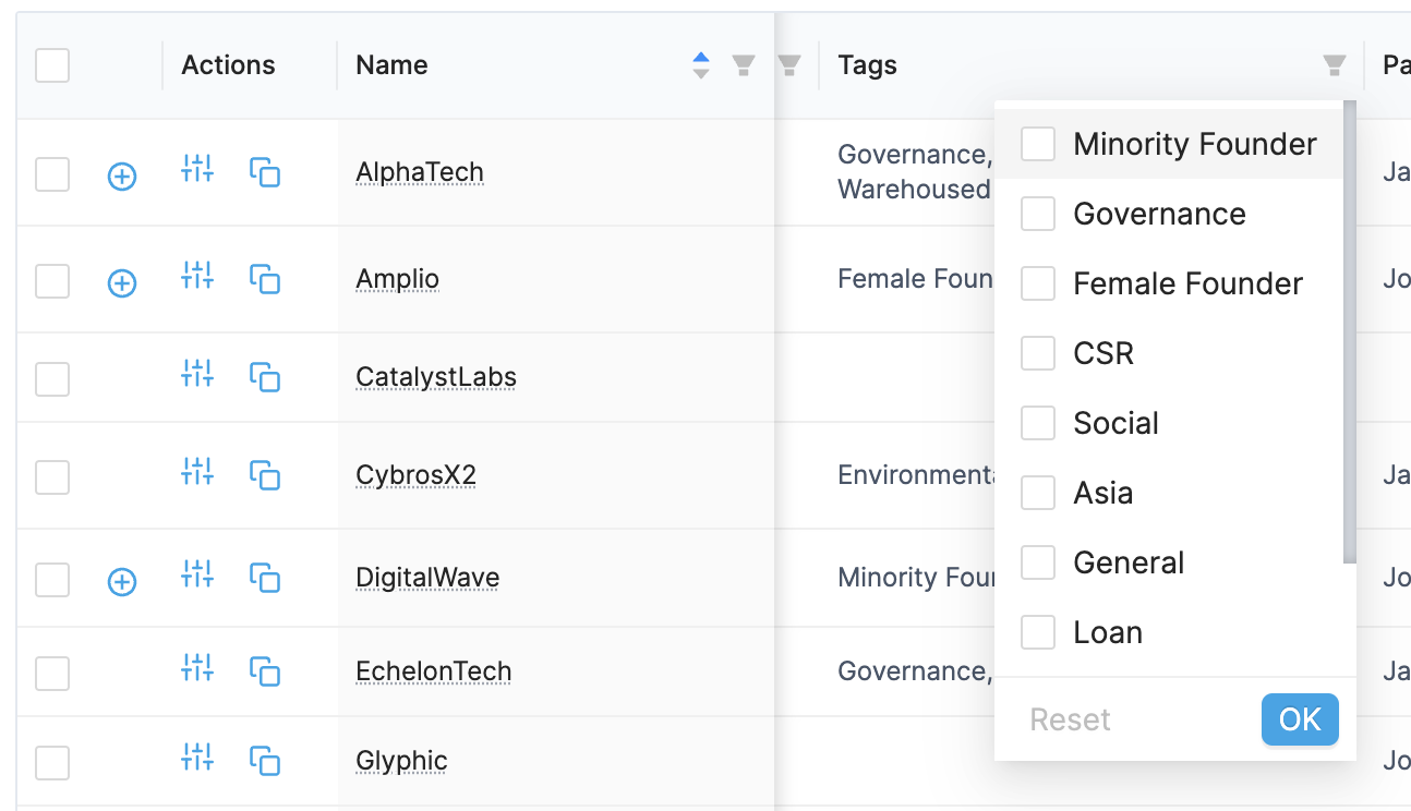 Deal tags are a quick and easy way to label deals with custom tags relevant for your fund. Your fund's entire portfolio can then be filtered for specific tags.