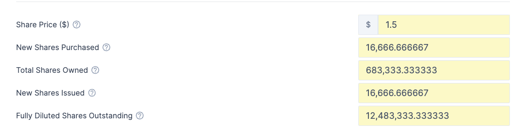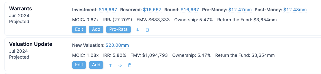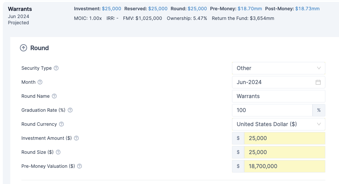 Alternatively, you can also simply add an Ownership Update event to reflect the new ownership in the company post-warrants. In this approach the price paid for the warrants is not captured in the invested amount into the company.